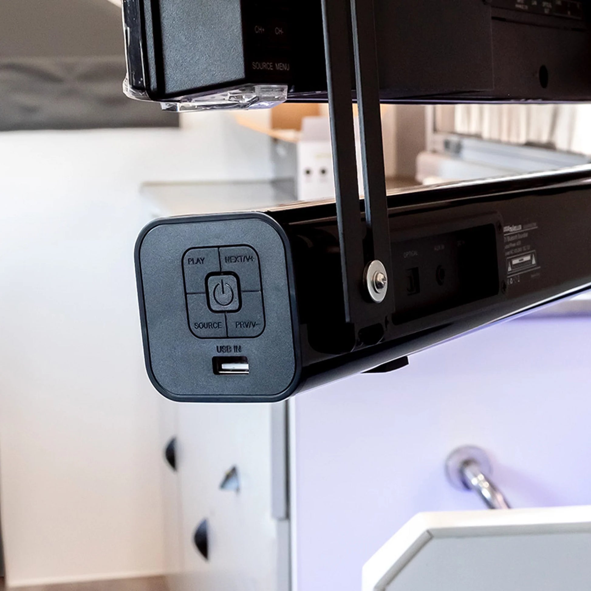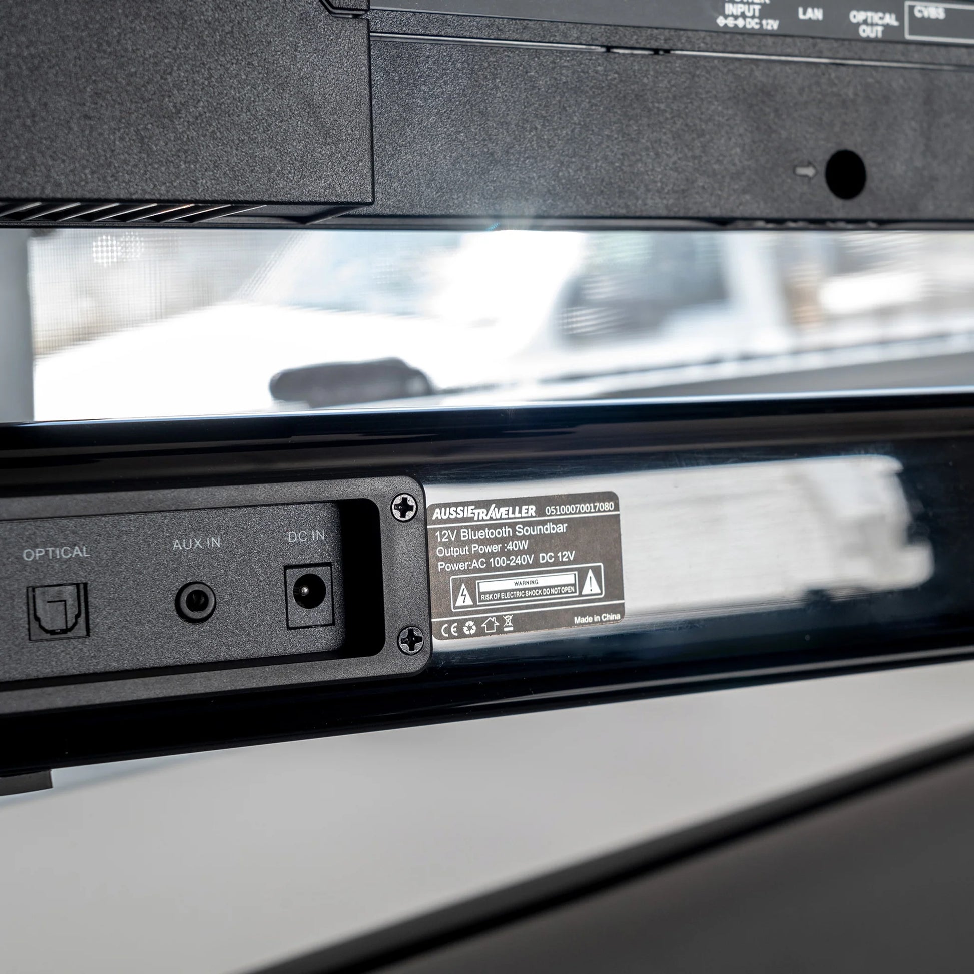 The Aussie Traveller 12V Bluetooth Soundbar is the perfect addition to your RV or caravan TV setup. The ultra-slim profile fits neatly under a TV to improve sound for your favorite shows or movies.
