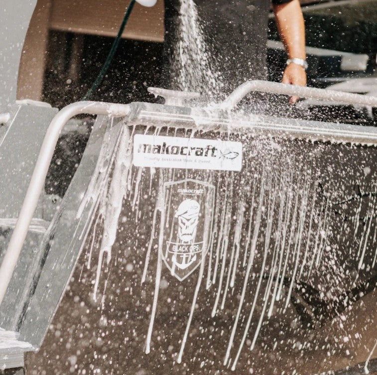 The Makocraft 1L Bottle ASSALT is a premium Caravan, boat and jetski wash formulated specifically for Australian conditions. Developed by Tim Stessle in collaboration with a chemist, this product effectively removes dirt, salt, grime, + deposits without damaging your vessel's paint, gel coat, or Aluminium finishes.
